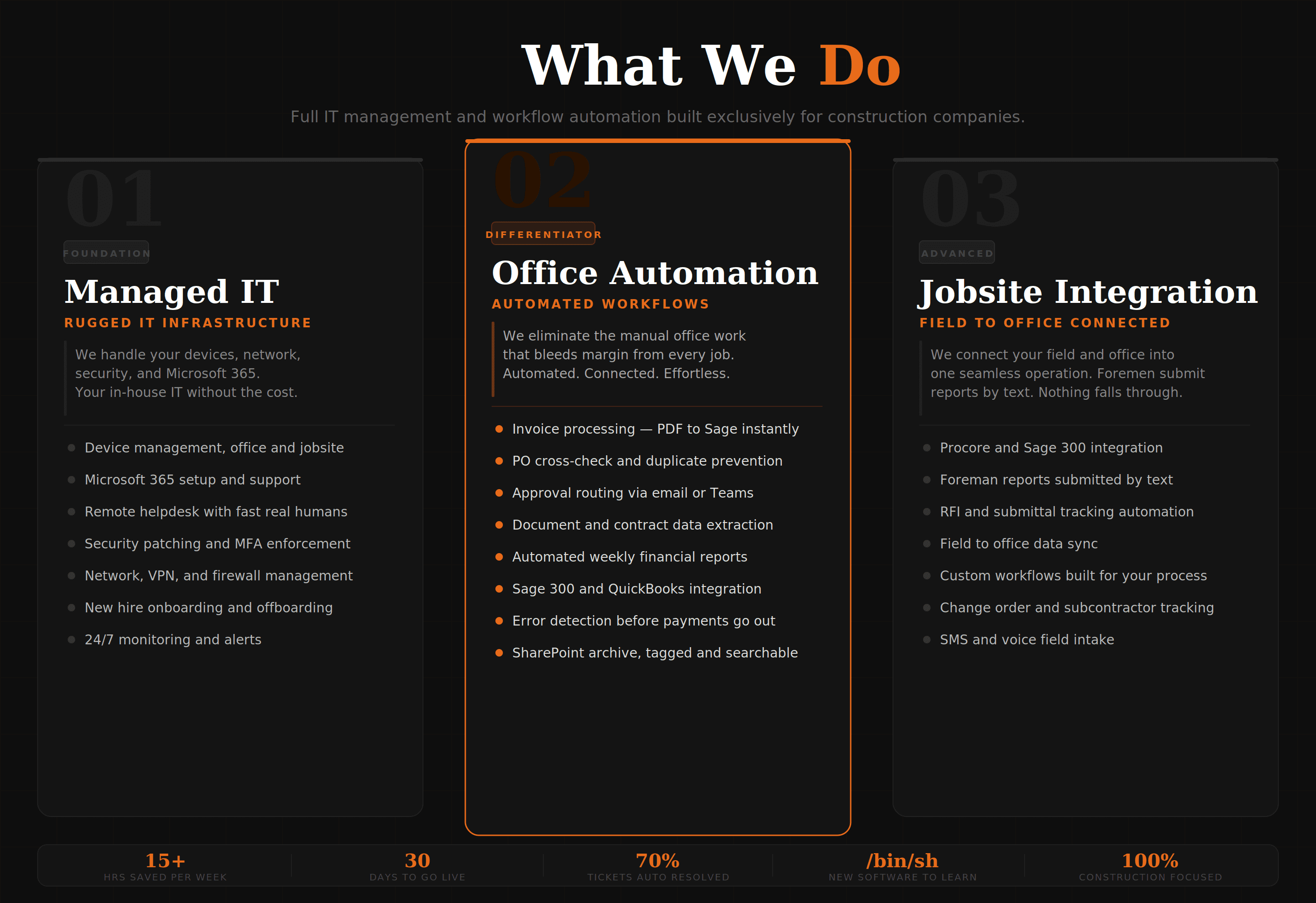 Your dedicated IT department built exclusively for construction. We keep your systems running, your team supported, and your office workflows automated. Proudly serving Colorado construction companies.